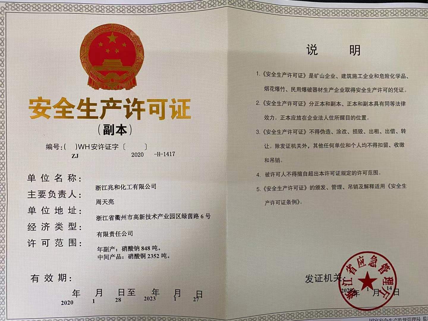 浙江兆和化工有限公司安全生產(chǎn)許可證